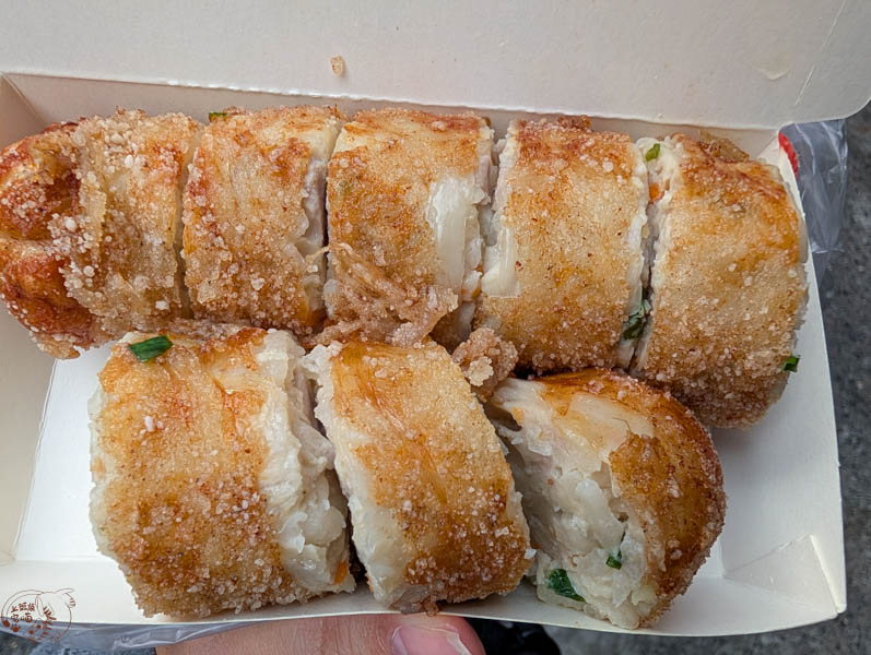 走進歷史悠久的嘉義東市場,遠遠就能看到一攤總充滿排隊人龍,空氣中更瀰漫著濃郁的油炸香,這就是傳說中的「阿富網絲肉捲」!這家讓嘉義在地人與觀光客都甘願等上20到30分鐘的超人氣名店,最大的特色就是堅持使用傳統豬網油來包餡。看著阿姨們俐落的包餡、油炸及切塊,超巨大的肉捲就這樣慢慢完成,每份80元包準一個人都快吃不完,可說是嘉義市場必買美食之一。